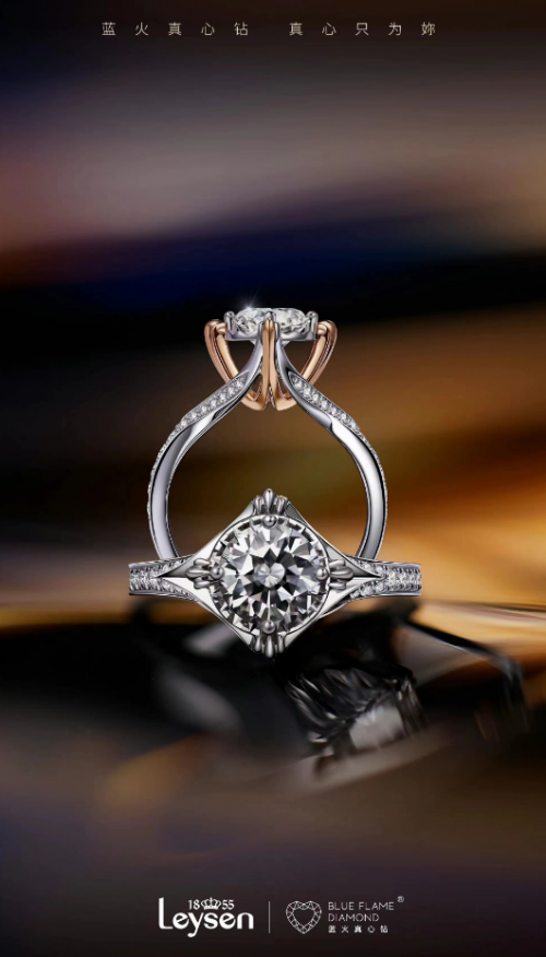 每一颗蓝火真心钻都经过莱绅通灵工匠们的精雕细琢,无论是切割的完美度还是色彩的明亮度,都达到极致的境地。蓝火真心钻采用了目前钻石切割领域顶级切割工艺——蓝色火焰切工工艺,并合理利用精确的光学原理,将钻石角度比例和棱边对称性提升到新的高度,火彩能够完美的折射出各个角度摄入的光线,仿佛一团蓝色的火焰在燃烧,让爱人感受到一片火热真心,底部是数条简约直线勾勒出一枚独特的“心”符号,更能代表真心的情感!