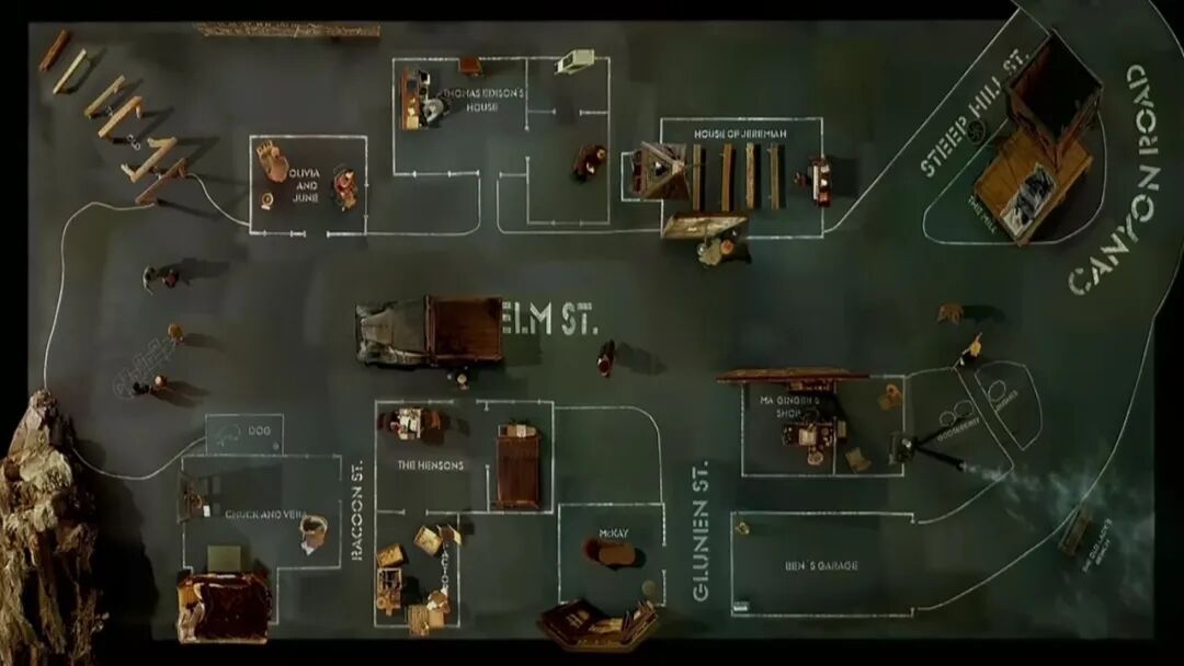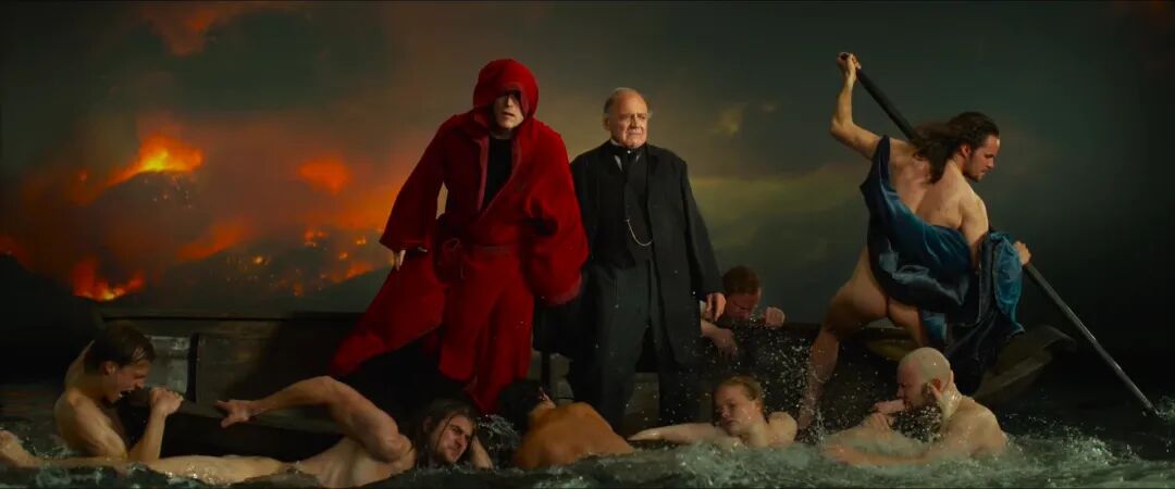 电影《狗镇》剧照《此房是我造》更是将融合电影推向极致,影片依然采取章节分明的段落结构,其中镶嵌着层层相套的叙事情节,以两个男人的对话展现两种艺术态度和心理空间,将文学、神学、哲学、历史、建筑、音乐、古典油画、摄影、动画、纪录片影像等各种庞杂素材融为一体,组合成后现代主义的拼贴艺术,甚至还穿插了拉氏以往的电影镜头,比如《忧郁症》中地球大毁灭的结局,这何尝不是拉氏所强调的创造艺术的材料?手持摄影的晃动镜头在杀人段落中得以保留,只是到了最后幻想的尾曲,身披红袍的杰克跟随维吉进入地狱之门,镜头回归了中正的古典传统,复现了文艺复兴时期但丁《神曲》中富丽恢弘的画面,时而用升格镜头展现天堂之美和炼狱之火,每一格画面都精致的无可挑剔,伴随着滋滋作响的刺耳鸣声,最后的审判庄严而肃穆,撒旦失足坠入火海,极具仪式感,因此成为拉氏电影的集大成者。