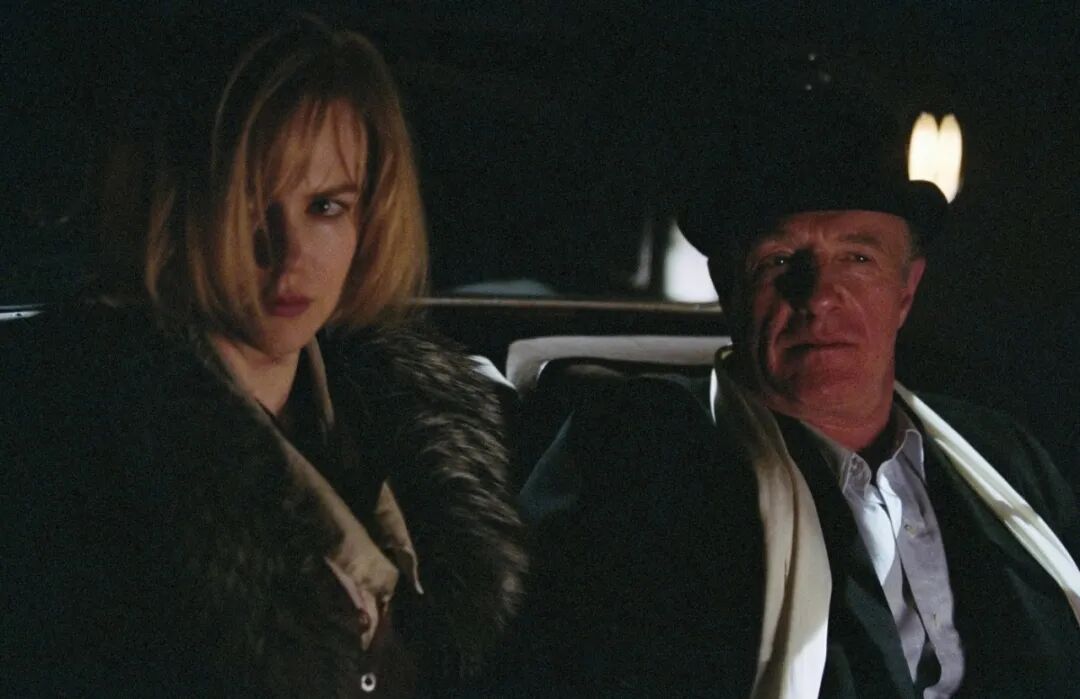 电影《黑暗中的舞者》剧照影片结尾,她们都打死了一个男人,被告上法庭,关进监狱。阮嫂在监牢里幻想着儿子的未来,塞尔玛更惨,儿子的眼镜虽然摘下了,但她却直接被绞死了,留下一片死寂。这种毫无救赎的悲情气质弥漫着整个银幕,观影后的压抑情绪几天后才消散,冰岛歌后比约克的歌声宛如天籁,可是歌舞越美好,就把现实映衬得越残酷。《狗镇》则放大了人性的恶,片中的女主格蕾丝是一个美丽的逃亡者,她从繁华的大都市逃到一个小镇,用所有的善意取得镇民的信任和喜欢,争取留在小镇的机会,与大家和睦相处,到每户人家工作并领取工资,赢得尊重和友情,似乎越来越美好。