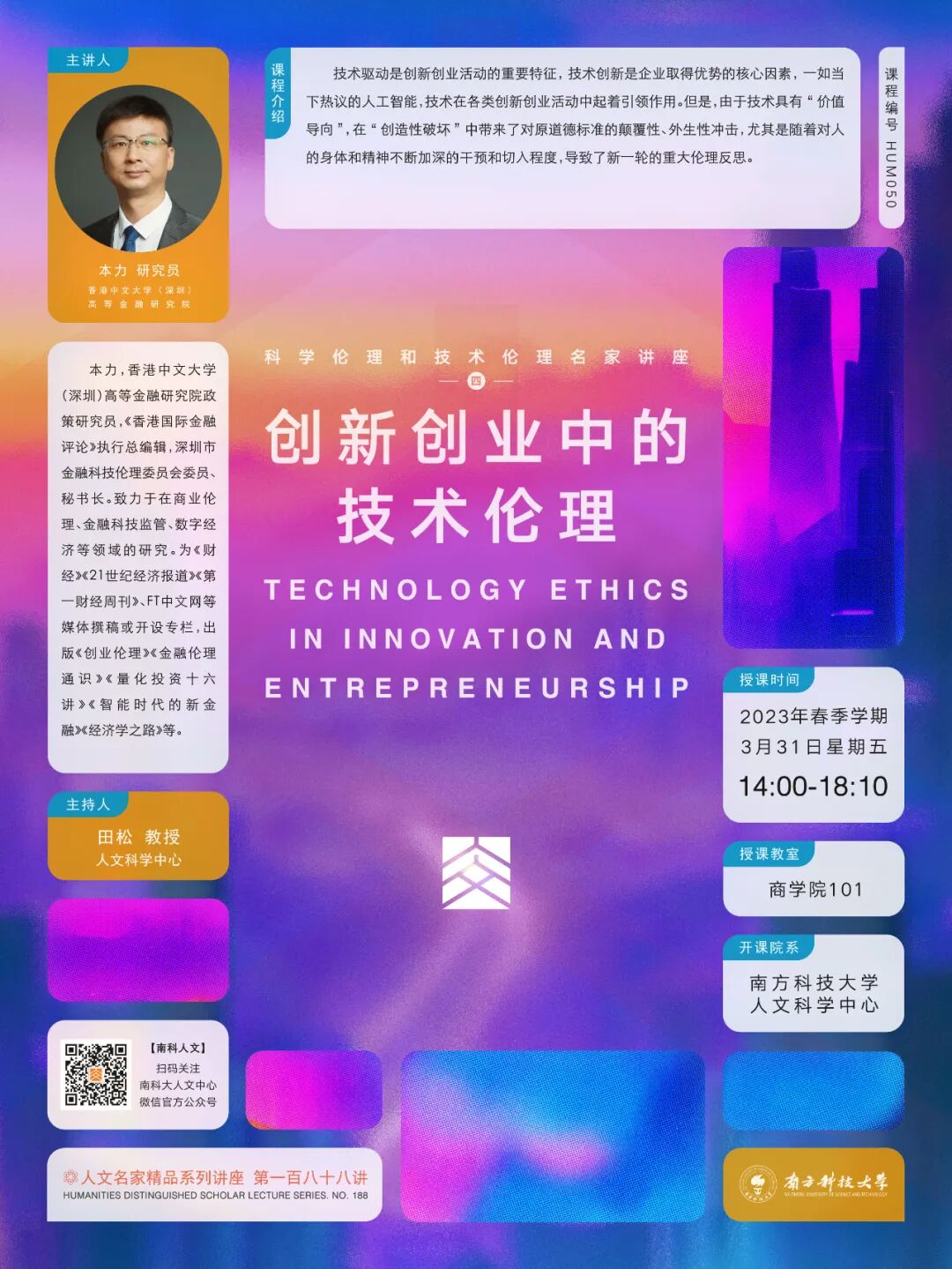 “科学伦理与技术伦理名家讲座”课程 第四讲
