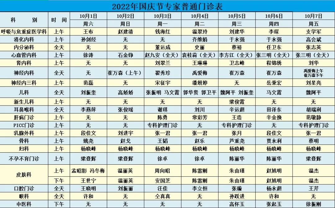 手机访问:wap.265xx.com2022年国庆节河北北方学院附属第一医院专家、普通门诊出诊表