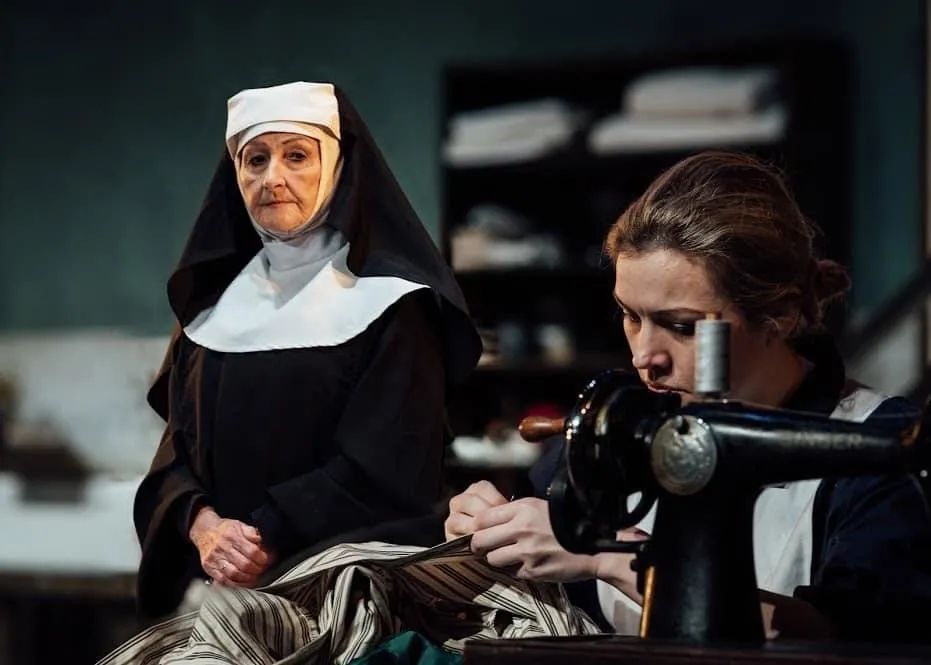 肯尼的这段话表明,构建关于抹大拉洗衣房的文化记忆具有时间和空间的双重意义。一是与过去的联结:洗衣房的受害者年事已高,必须将她们的经历和证言写入历史和民族记忆中;二是从空间上讲,爱尔兰人历来流散海外,许多抹大拉洗衣房女性的孩子也被卖到美国,成年后渴望找到母亲,这些流散的爱尔兰人也应该获得关于这段往事的记忆。只是在依赖相关文化产品进行再现与构建记忆的过程中,应避免对苦难的奇观化和猎奇式消费,抵抗反怀旧叙事,使过去的再现能与当下发生联系,激发公众的伦理思考、共情乃至行动。在这些方面,以剧场为代表的艺术形式比以电影为代表的大众媒介更能有效地创造移情空间,生成具有积极社会效用的假性记忆。