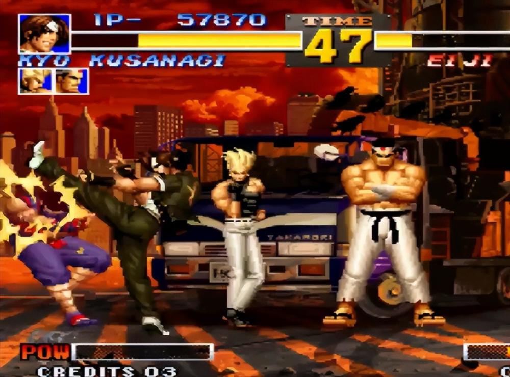 而且当时许多街机游戏的设计前提就是“骗币”,像KOF那样三个角色即使是按最低时长计也能玩大概两分钟左右。即便前面两个角色挂了,还能靠最后的大将一波翻本赢回来,这就形成了巨大的投币吸引力。