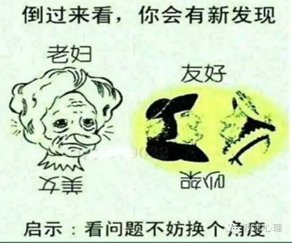 看问题的角度不同,结论也不同。有的人固执己见,思维僵化,形似井底之蛙,心却夜郎自大,我们称之为“井底思维”;有的人跳出局外,站在对立面去换位思考,形成逆向思维。