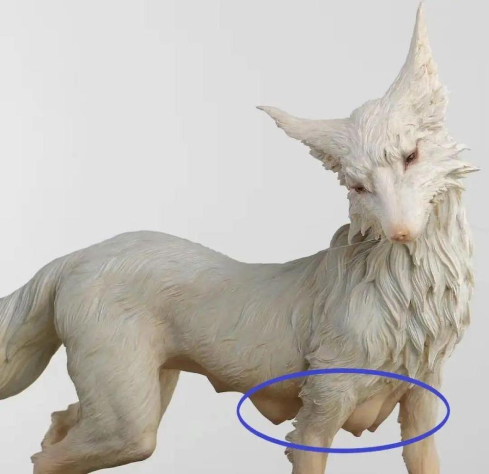 能够看到,狐身弯曲的腰胯结构,身下的哺乳器官,明显参考了人类器官比例。