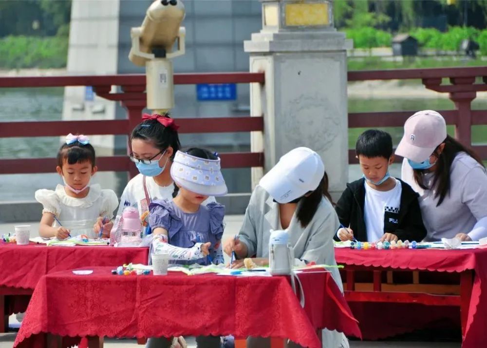 5月8日,母亲节,西安文旅之声“长安依旧,夏怡人——夏风起 纸鸢飞”亲子风筝DIY活动在汉城湖封禅广场举行。