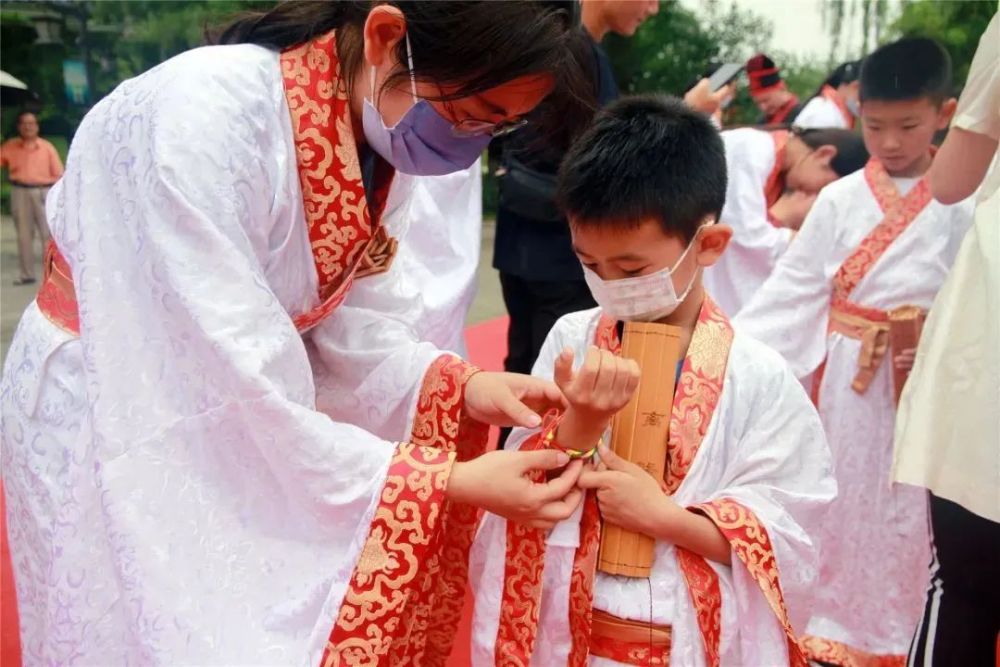 整场成人礼包括学子入场、冠礼笄礼、学子三拜、师长聆讯等环节,重现了古代汉民族的成人礼,让青年学生在传统文化滋养中成长,激励青年学生继承和弘扬中华民族尊师重教、孝敬父母、热爱祖国的优秀传统文化。
