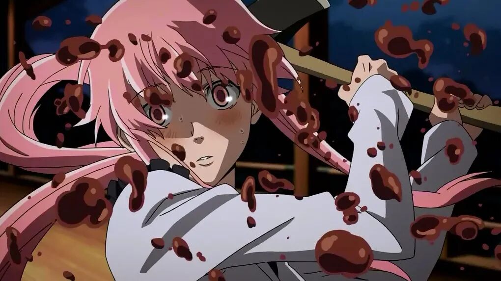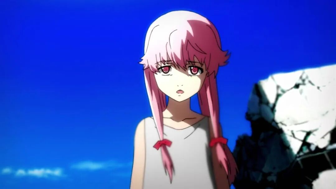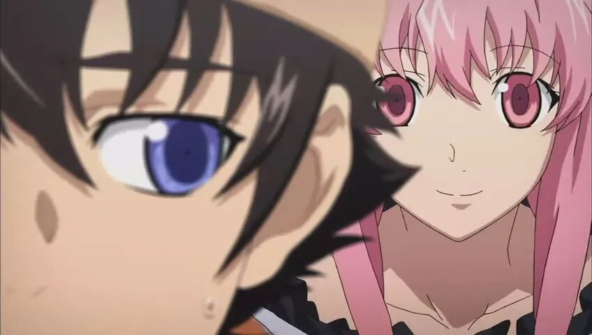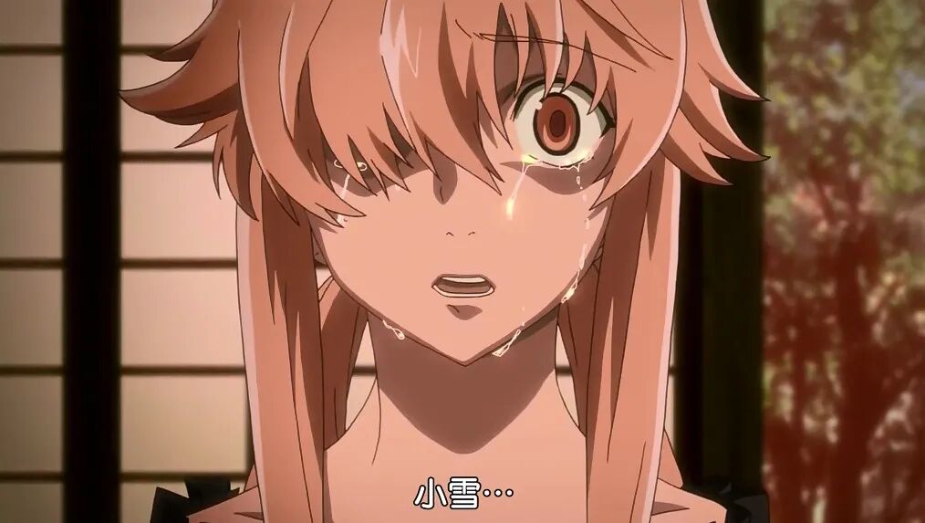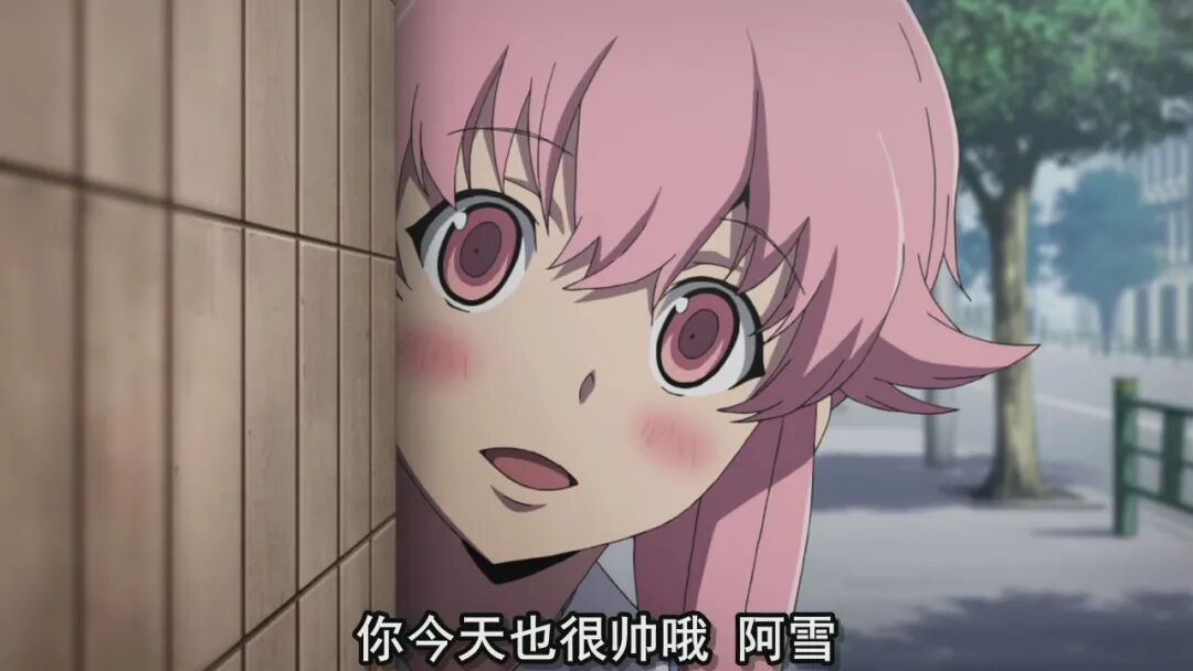 左右滑动查看我妻由乃之所以大获成功不仅仅是因为她的病娇、颜艺,更因为她的悲剧,TV动画中对于她病娇的背景与动机有较为细腻的刻画,这让观众能够带着共情看到一个少女从天真可爱到日渐扭曲,从生机勃勃到极致腐败。