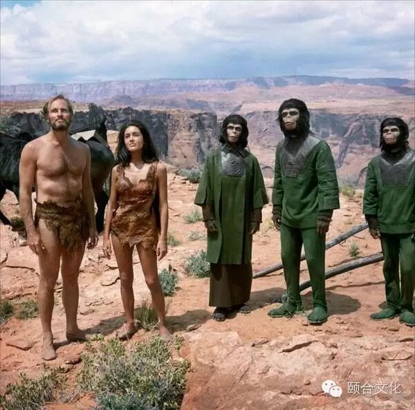 美国宇航员迫降到一个地外星球上,那里人猿统治着世界,宇航员被当作进化不完全的人类。他逃离了人猿的控制,在茫茫海滩边上,他看到了歪斜倾倒了的自由女神像。原来他回到了地球,而地球上的人类早已被核战毁灭,走上了另一条进化之路。