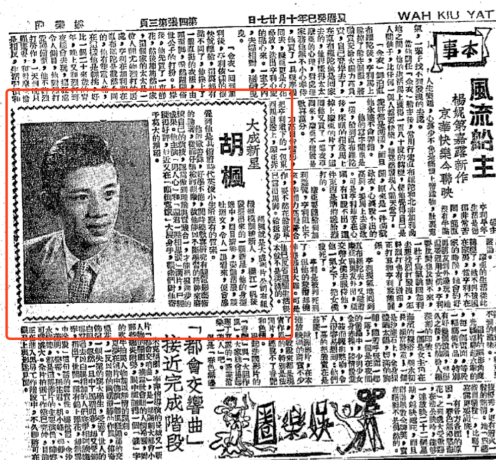 ▲胡枫考进大成影业之后,还登了报纸《华侨日报》。