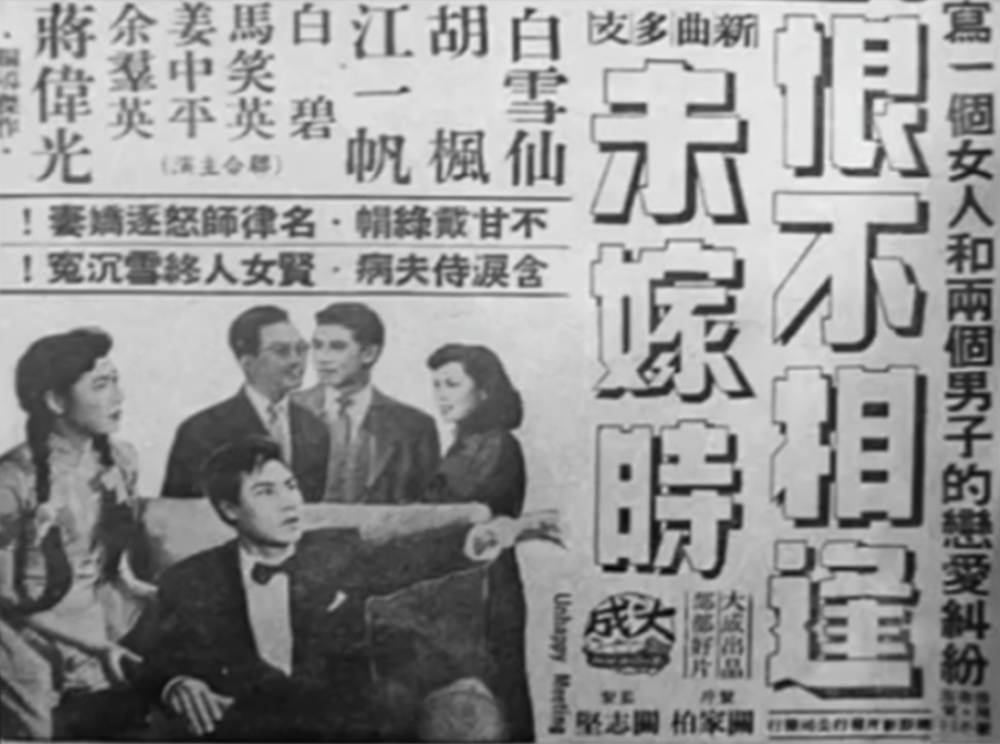 五十年代,香港的电影严格意义上来讲是改良版的粤剧,大部分戏码都是从粤剧里改编的,所以演员大都是粤剧名角儿,刚才讲到的芳艳芬是粤剧花旦,而胡枫和粤剧名伶白雪仙、任剑辉也合演了非常多的粤语片,几乎撑起了粤语片的半壁江山。