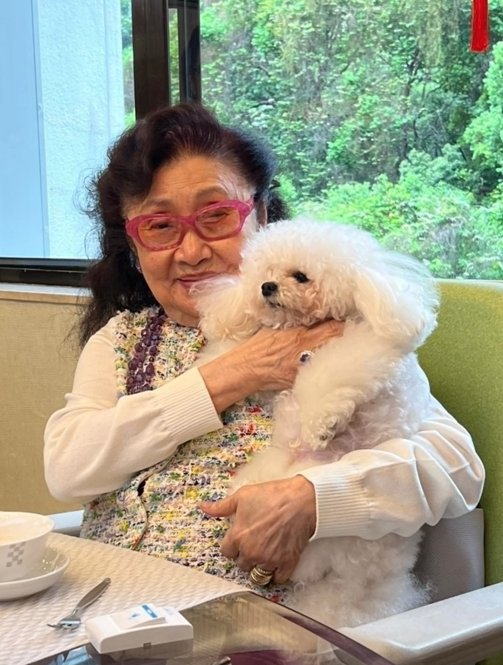 ▲芳艳芬在家庆祝自己91岁生日时留影。