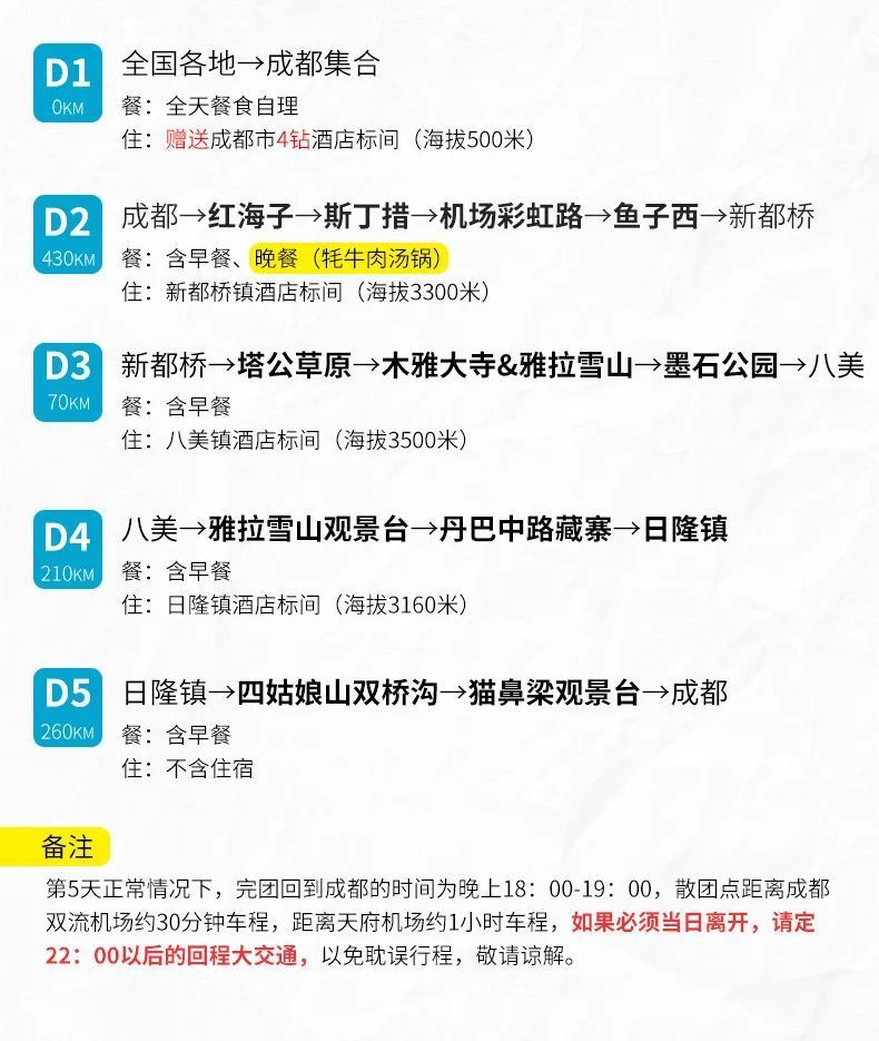 (2)大美川西沿途用餐以川菜为主,但因为路况原因,很多时间不能正点用餐,请自备干粮。