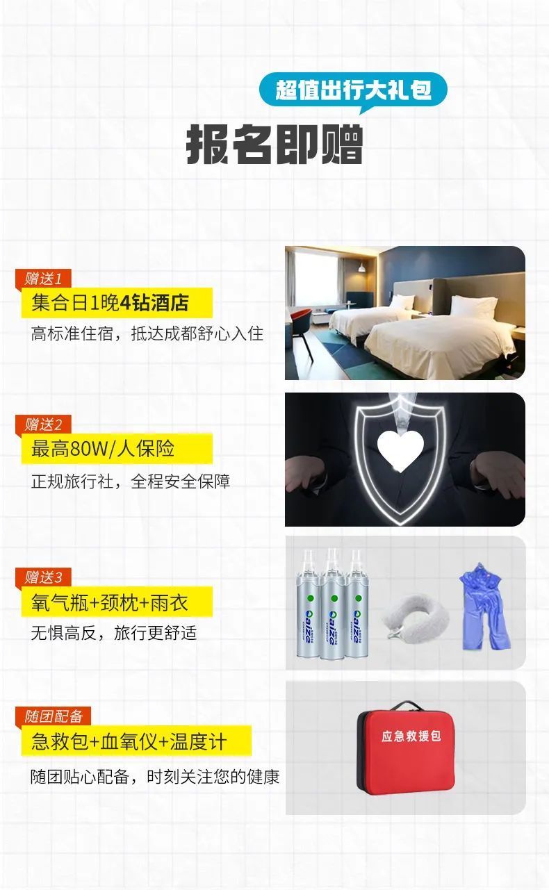(3)特别声明:“大美川西”因没有医疗资质,随车只提供瓶装氧气,无任何药品,请提前备足适合自己的药品。