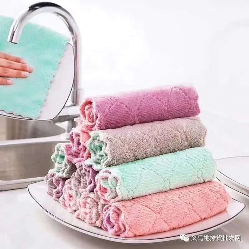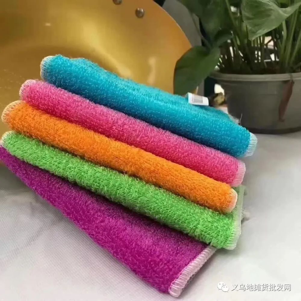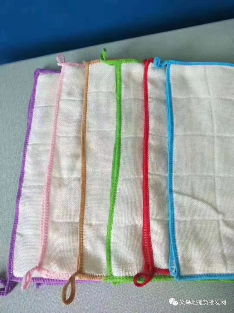 竹纤维不粘油洗碗布,地摊2元店热卖洗碗巾18×23型号0.85元一片,一件1200片起批,5色混配,大彩27×30型号700张一件。小白18×23型号,大白27×30型号价格见图7,双层加厚不掉渣不掉色,精美锁边颜色靓丽。长期货源。