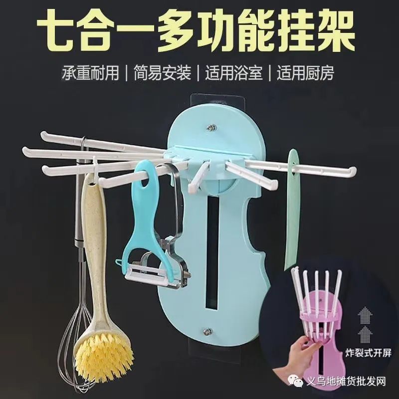七合一多更能伸缩置物架9元一个适用于厨房,卫生间,客厅,卧室7个挂钩可以画不同产品,物件,收拉方便,不空间