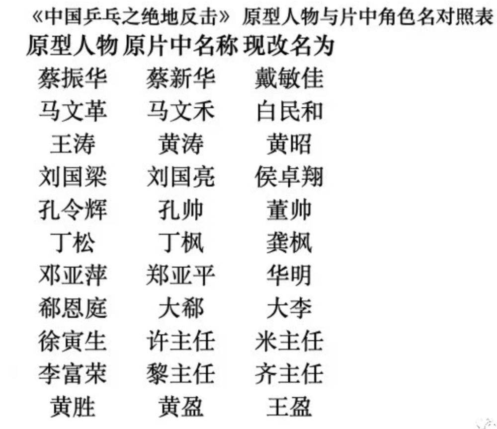 《中国乒乓》也遭遇了角色改名危机。