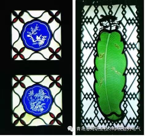 玻璃在中国出现得很早,但真正用在建筑上还是明清之后的事情。广州因为对外交流多,所以比较早地在门窗隔扇上用玻璃。玻璃的装饰跟木质不一样,采用刻花,左边刻的是花卉,右边则是芭蕉叶子,上面居然还有很小的蚂蚱、蜜蜂,完全是一件工艺品。