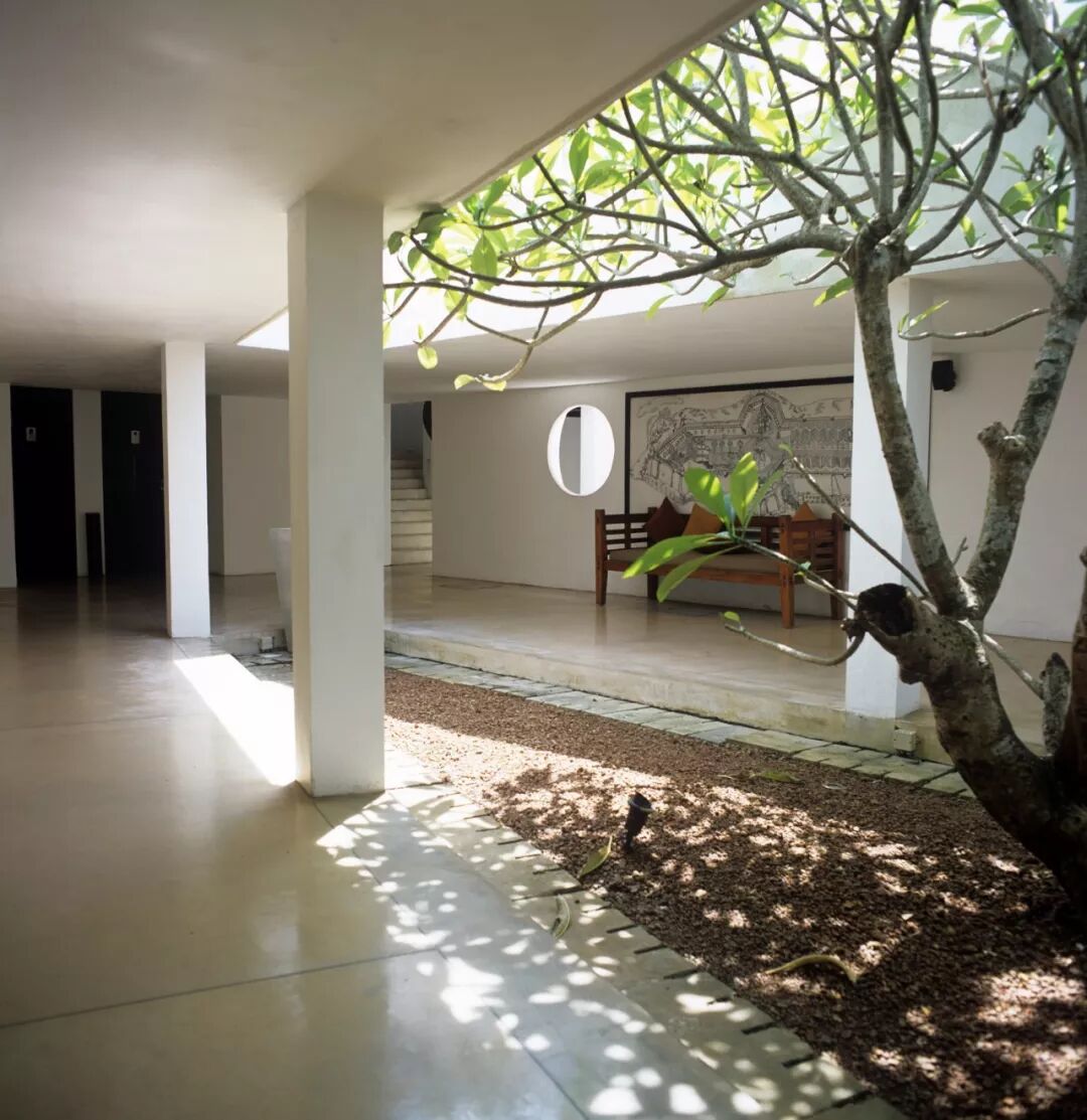 这是一座私人博物馆,生活的百科全书,“物”的花园。古董并不因其年代久远而获得溢价,它的价值或许仅在于记录了一次难忘的私人旅行。巴瓦将个人情感深藏在内心的密室,又将人生故事通过家宅物品袒露于众人面前,隐晦的暴露欲就这样化成日常审美。这一切,连带庭院的措置安排,都一丝不苟却带有洒脱的肆意,就像入口走廊采光井中那株小树下摔碎的花盆,记录着移植当日一个随性但充满诗意的动作,不假修饰。设计即摆放:这像是巴瓦提供的答案,揭示了他对时间的态度。