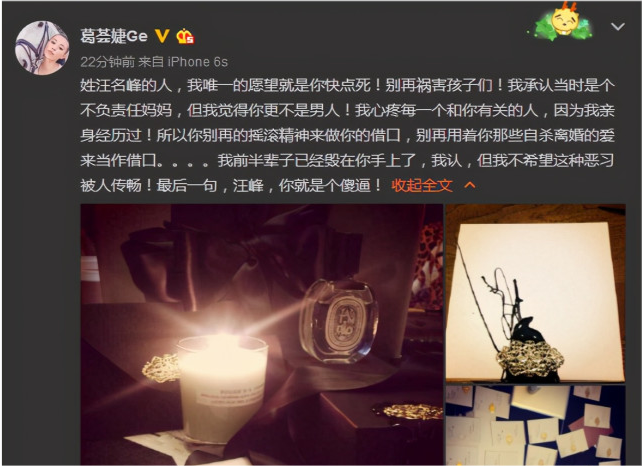 葛荟婕汪峰分手之后对汪峰的纠缠从没断过,汪峰每结一次婚他都会出来说话,曾发文:“我承认我不是一个好母亲,但是你更不是一个好男人。”
