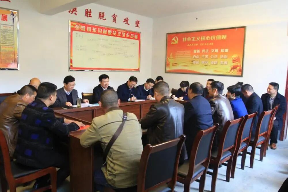 陕西省人大常委会副主任、安康市委书记郭青(前排左三)在汉滨区张滩镇东沟村召开新民风建设调研座谈会