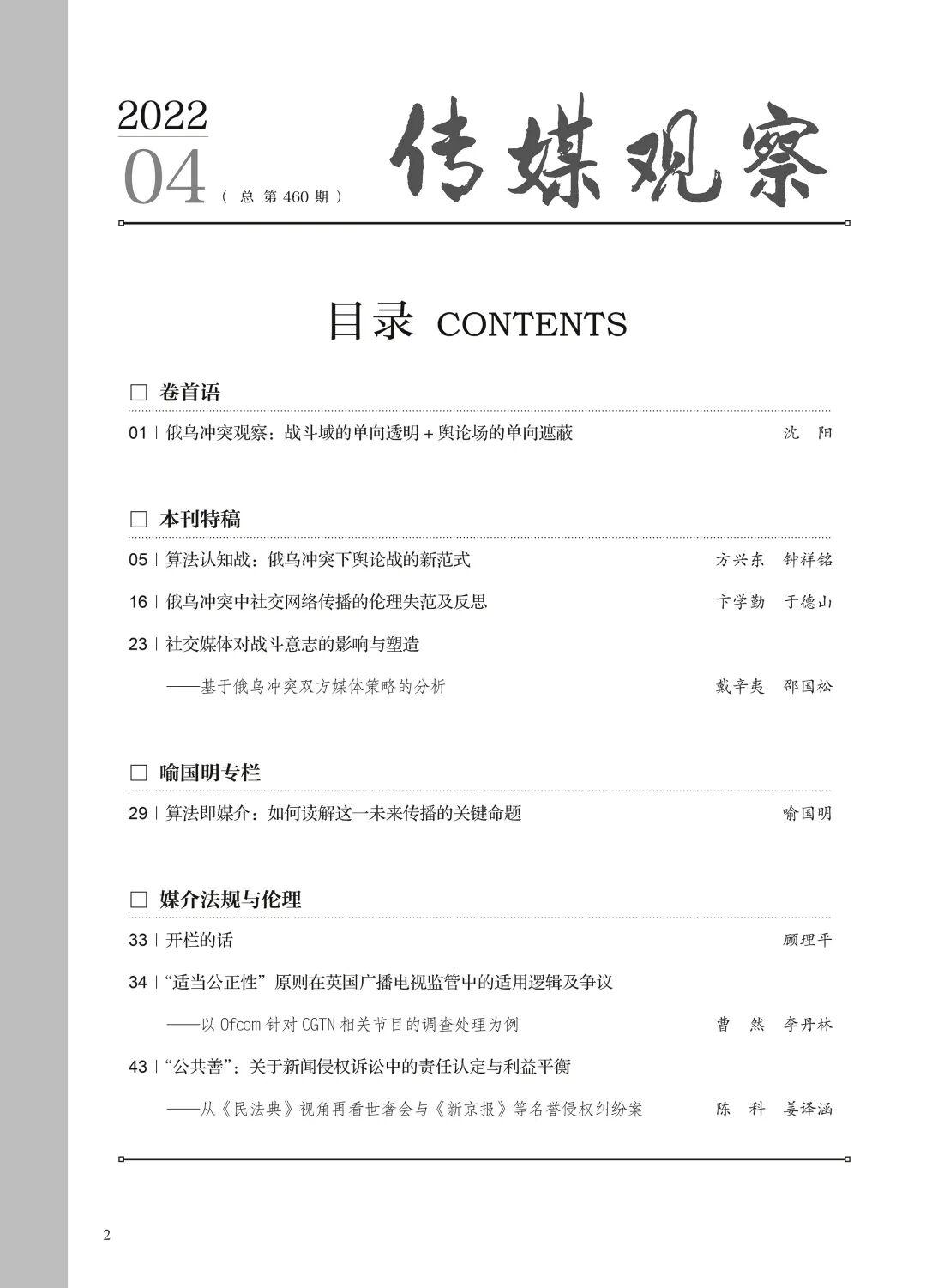 手机访问:wap.265xx.com《传媒观察》2022年第4期目录
