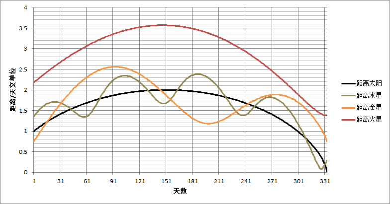 地球到各星体的距离变化(Mathematica计算得出)第150天,地球到达“远日点”,地表已被大面积冻结,世界人口锐减到不足一亿,活下来的人们在大大小小的地下掩体内艰难苟延。曾经,理性在疯狂面前不堪一击,然而在漫无边际的绝望面前,疯狂也渐渐变得苍白无力。罪恶和血腥很快也无法激起人们的一丝欲望,剩下的,只剩行尸走肉般的浑噩。只有在或卧或坐的人群中穿行的老鼠,依旧在为了明天的粮食奔波。