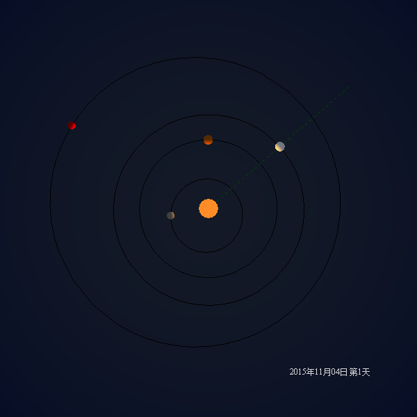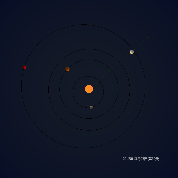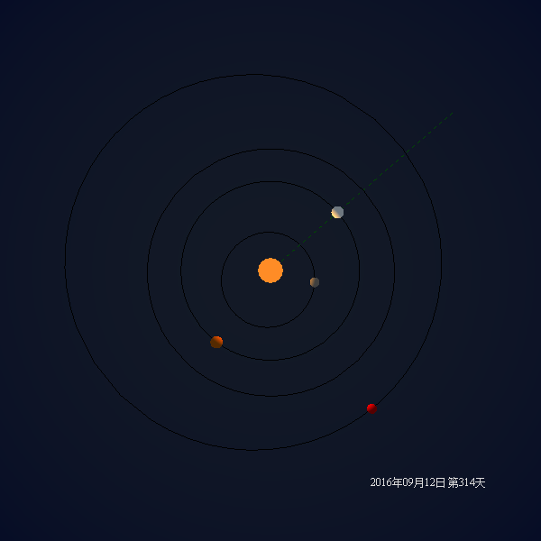 地球相对各个天体的位置(由Mathematica计算) 动态图请进——————————————http://m1.yea.im/4bT.gif