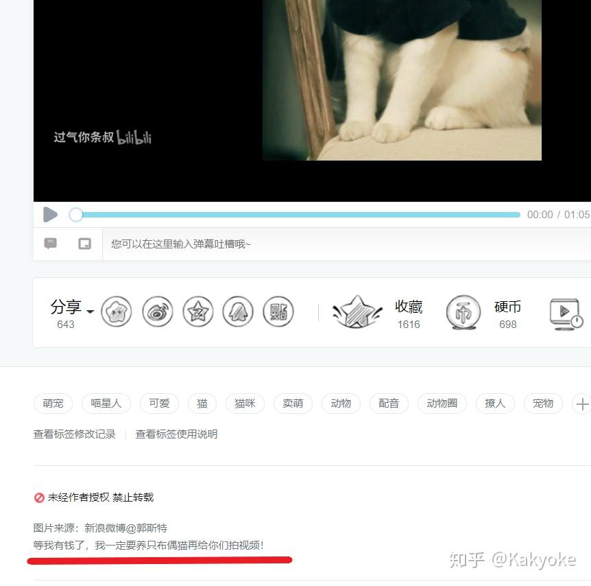 碴条在18年1月14号一视频的标注中称“等我有钱了,一定要养只布偶猫再拍视频”