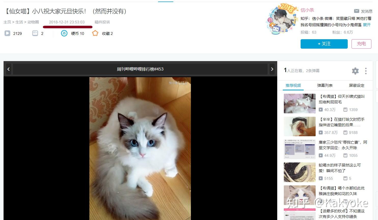 在18年12月31号的视频中拍摄了一段布偶猫