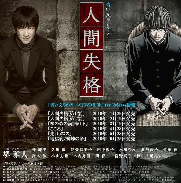 38.青之文学:太宰治、夏目漱石、芥川龙之介、坂口安吾,一个个都是响当当的名字,他们共同构成了此片的编剧。也就意味着此片是集锦,而且是名著改编。我依然记得我第一次看《人间失格》的震撼,太宰治把我的快乐一扫而空,让我相当长一段时间不待见日本那群自杀作家····此片改编力度比较大,每个篇章对应不同的导演,所以表现手法也截然不同,如果你看过原著,那自然别有一番风味。如果你没有看过原著,那么说不定此片恰好能够吸引你,让你去尝试那几部作品。PS:图片就放太宰治的《人间失格》吧。