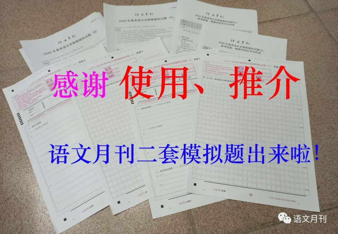 语文月刊2020年高考二套题AB卷模拟题出版,数量有限,卖完即止!