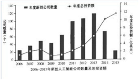 C.从 2006 年起人工智能行业的投资额也连续快速增长,至 2015年以近 12 亿美元的总资金量位居第一。