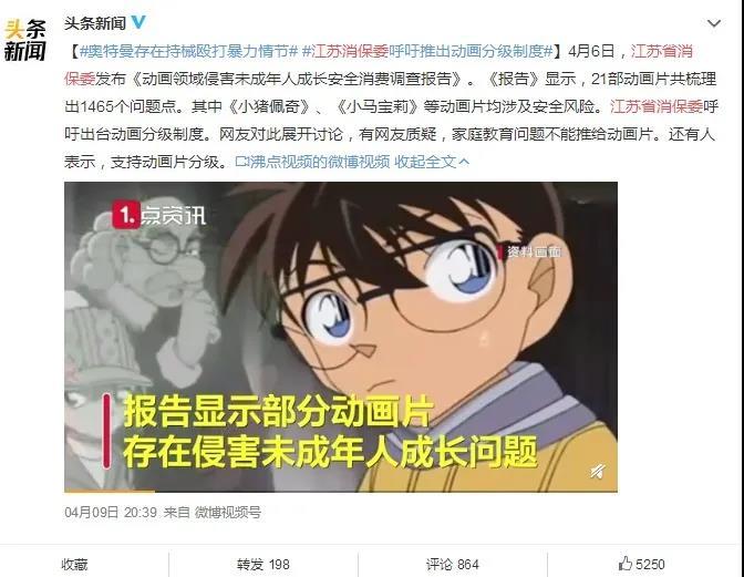 在江苏省消保委做的一项调查中,选取了21部孩子喜欢看的动画片,竟然梳理出1465个“问题点”。报道中说,“这些动画片存在的问题主要有尺度较大,涉及暴力犯罪元素;存在危险行为,孩子容易模仿;氛围阴暗黑化,剧情偏向成人化;以及强植广告行为逐渐泛滥。”