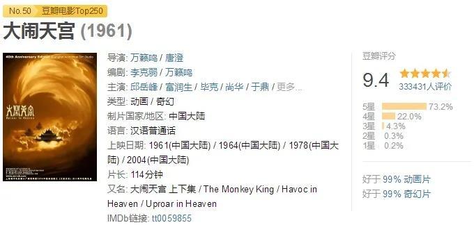 豆瓣评分9.4,好于99%的动画片和奇幻片——偏巧这两类片种都算得上如今中国电影的短板——经典程度不言而喻。
