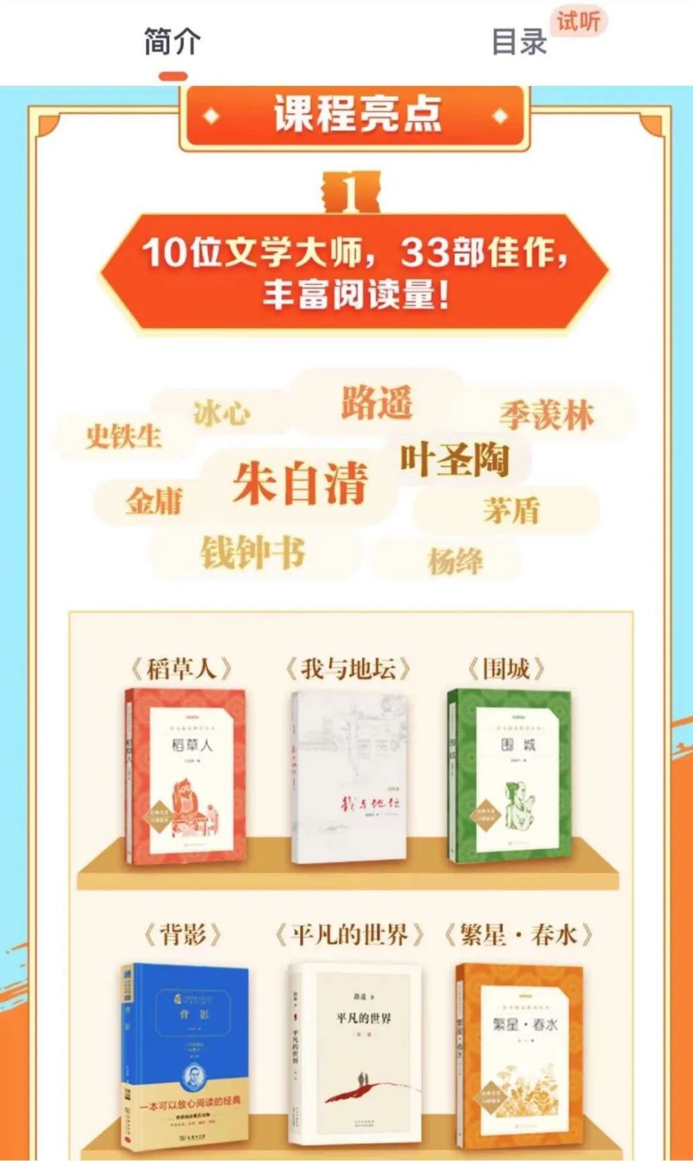 结合人教版中小学语文教科书,涵盖十位中国文学大师:茅盾、季羡林、朱自清、钱钟书、叶圣陶等。精读全60讲,订阅方式:下载少年得到,搜索沈嘉柯。