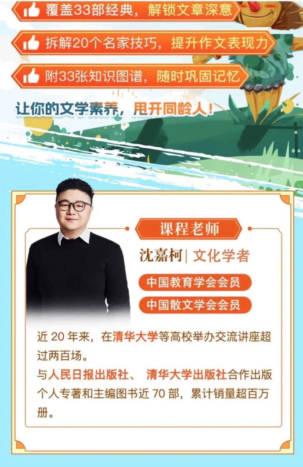 沈嘉柯主讲「文学大师课?」:适于9岁以上青少年。让孩子的语文成绩甩开同龄人,真正掌握阅读与写作。