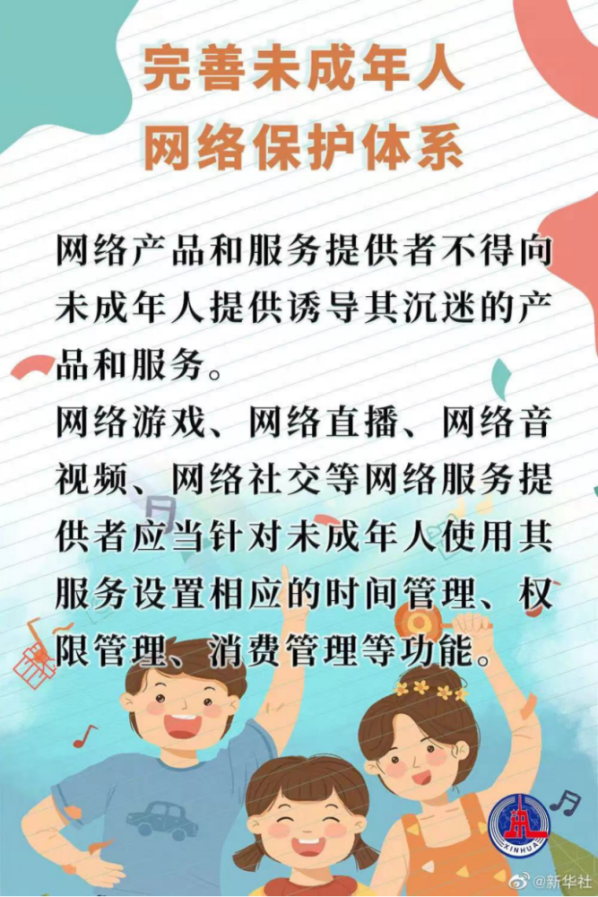 游戏沉迷也是如此,网络游戏不仅要经过特殊批准,而且要针对未成年人使用其服务时,设置相应的时间管理、权限管理、消费管理等功能,否则依旧要罚。所以玩游戏的同学应该能发现,现在很多游戏开始身份验证了,而且是未成年人的玩家,也会在连续玩一段时间后强制下线。《未成年人保护法》还规定了网络游戏服务提供者不得在每日二十二时至次日八时向未成年人提供网络游戏服务。