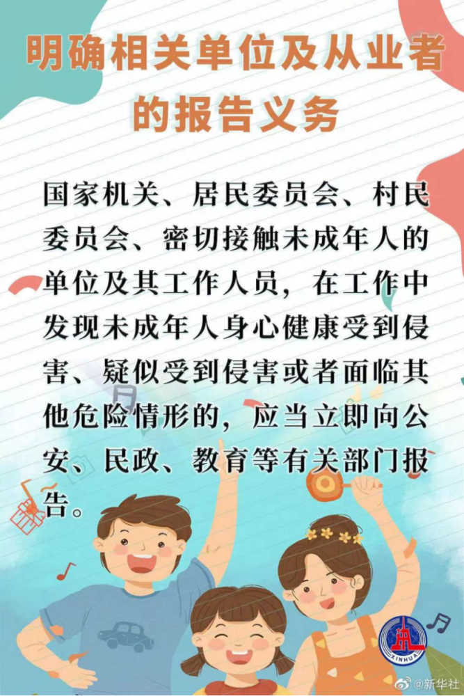 《未成年人保护法》在总则中确立了强制报告制度,这一制度凝聚了社会合力共同保护同学们。