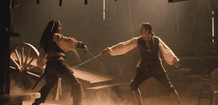 海盗们抓住了带着金币的伊丽莎白,从小喜爱海盗文化的伊丽莎白立刻要求parley,所谓parley是《海盗法典》规定的海盗谈判,即:对方要求谈判,在谈判结束前,海盗不能伤害对方。