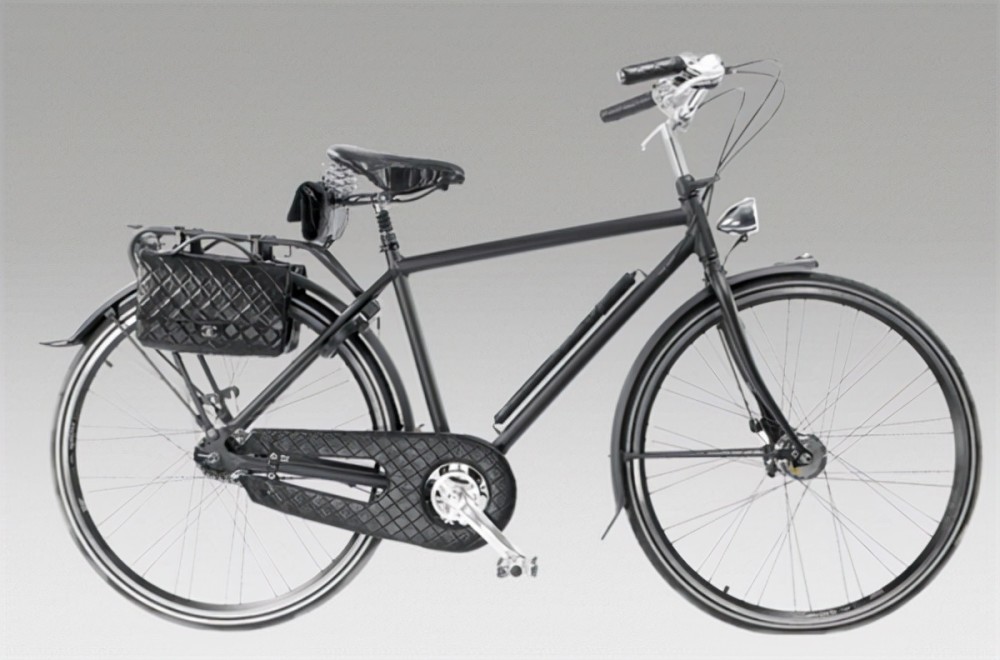 它完全是手工制作的,并具有美丽的细节,例如一对香奈儿皮革软垫手柄。它有一个 8 速齿轮和一个小喇叭。但这款自行车最漂亮的元素是两个带衬垫的扁平袋子,可以单独拆卸并肩扛。(包包设计是这些时尚品牌绕不开的设计元素)
