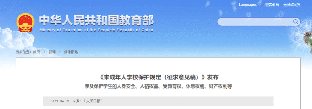 1.《未成年人学校保护规定(征求意见稿)》发布