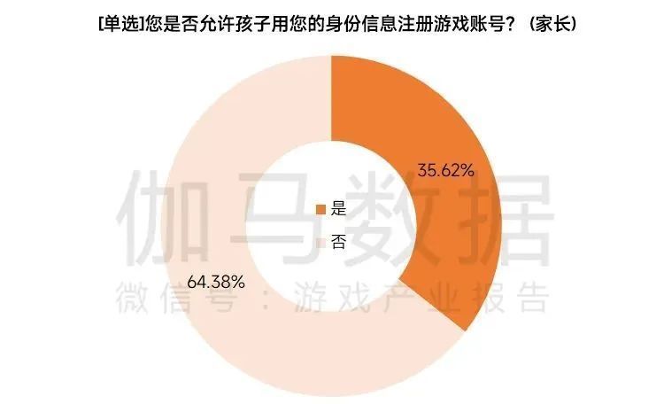 在家庭监管层面,较为普遍的一种情况是父母认知与实际情况存在偏差。在家长自行管控未成年人游戏行为的过程中,会直接或间接地协助未成年人超时游戏,现阶段在孩子玩游戏的家庭中,有超过35%的家长允许孩子用自己身份信息注册游戏账号,而在家长允许外,未成年人也常会通过冒用其他亲戚、朋友等成年人身份信息的方式来绕过企业防沉迷系统监管,冒用身份信息是限制防沉迷系统发挥的一个重要原因。