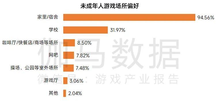 户外娱乐场所限制是促使未成年人偏好网络游戏的另一诱因。根据用户调研,具有游戏习惯的未成年人在课外更偏好于网络活动,其中九成以上未成年人的主要游戏场所是在家中或宿舍,加强引导未成年人户外活动,保障未成年人户外活动场所应是当前守护未成年人健康成长的一项重要关注点。
