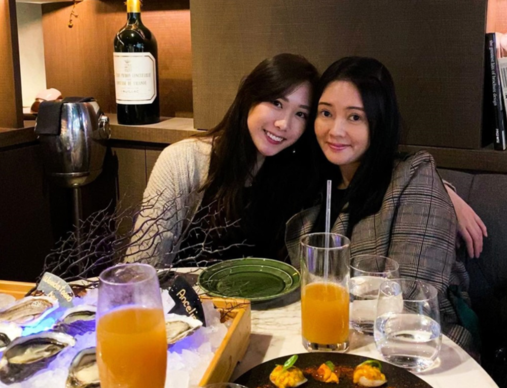 与李丽珍的合照,两人眉眼之间都很相像。