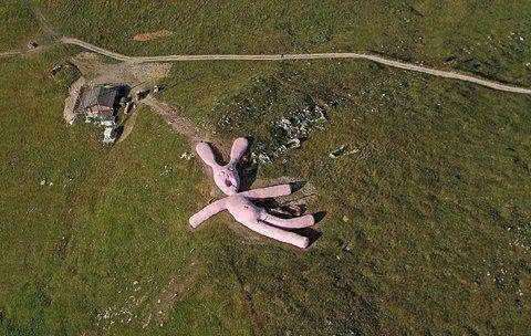 这只意大利的兔子玩偶吸引了很多的顾客前来观赏,因为这具兔子玩偶的身体实在是太大了,无法放在屋内,因此它只能躺在意大利北部的一个山上,游客来游玩的时候,总是喜欢躺在它的身上或者抱着它,据说这只兔子是花费了5年的时间创造的,它的身体里面是稻草,外表是柔软防水的材料,这个兔子玩偶的设计师预计兔子能存活到2025年,它是从05年放置在山上的,现在的它不仅全身的颜色都变了,而且它的肢体也是分崩离析。
