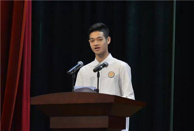 高三(18)班林嘉轩同学作为学生代表发言,表达了对同学、老师、父母的感恩,他从自己对“成人”二字的理解出发,告诉所有高三同学,成人最大的意义在于“学会感恩”和“学会担当”,并号召同学们不负青春,勇于亮剑,用激情与梦想点亮青春的风采,用智慧和汗水铸就人生的辉煌。