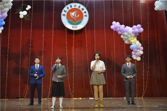 成人礼上,胡培怡、彭名洋、吴丹妮、曾方鼎四位学生深情朗诵了高三(3)班黄婷和高三(4)班苏晓冰共同创作的诗歌《十八岁的遐想》,诗中畅想的情景引起了同学们的共鸣。