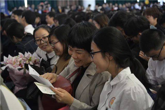 活动现场,还进行了成人礼最重要的内容——学生与家长互读信件、感恩鞠躬、行冠笄之礼。学校在活动前特别邀请了每位学生家长在孩子成人之际写下寄语,同时每位学生在之前都给父母写了一封信,在现场展开信纸的那一刻,不少家长和孩子流下了感动的泪水。其后,学生向父母鞠躬并与父母深情拥抱,感谢父母十八年来的辛勤养育。拜谢过程中,家长为学生加冠、及笄,同时向孩子赠送成人礼物——《中华人民共和国宪法》小读本。