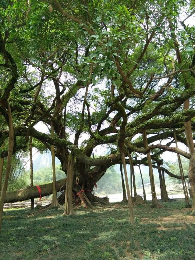 而在我国广东江门市有一颗更大的榕树,覆盖面积达20亩以上,树龄已有500多年,垂下4000多条树根,被认为是世界上最大的榕树,它也是巴金先生笔下《鸟的天堂》中所讲的那棵树。另外,孟加拉国也有一棵大榕树和它的覆盖面积差不多。
